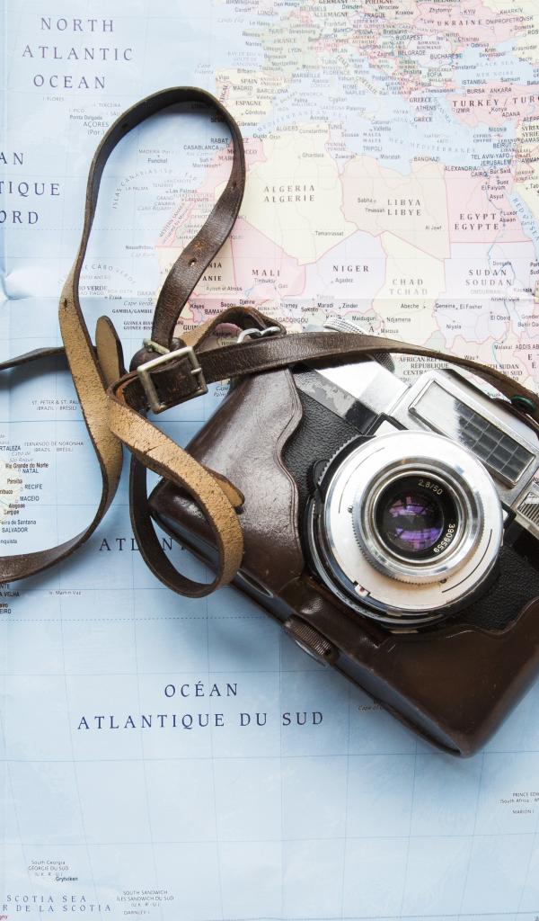 Wallpaper Old camera lies on the map