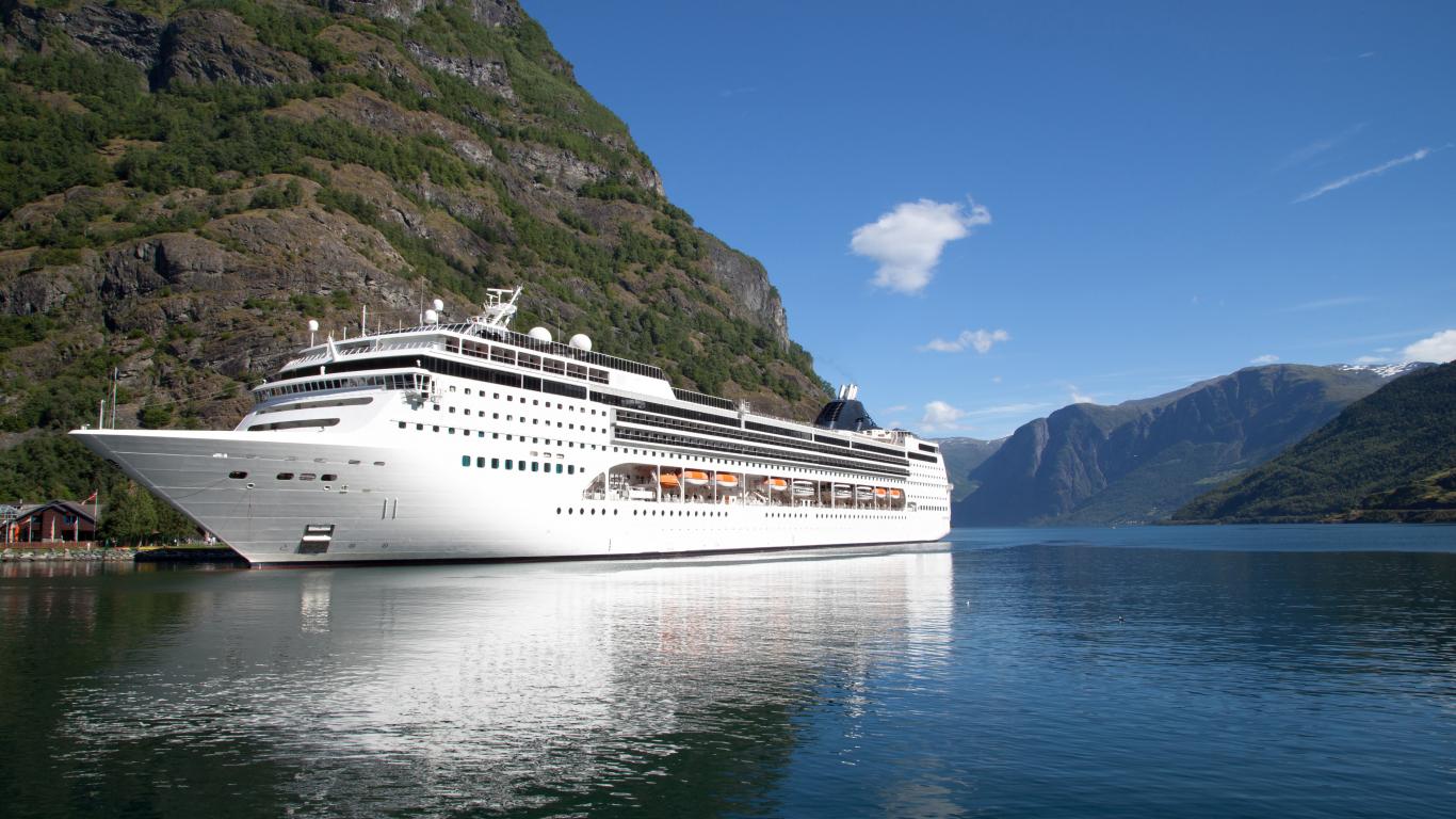 Wallpaper Cruise liner in the mountains
