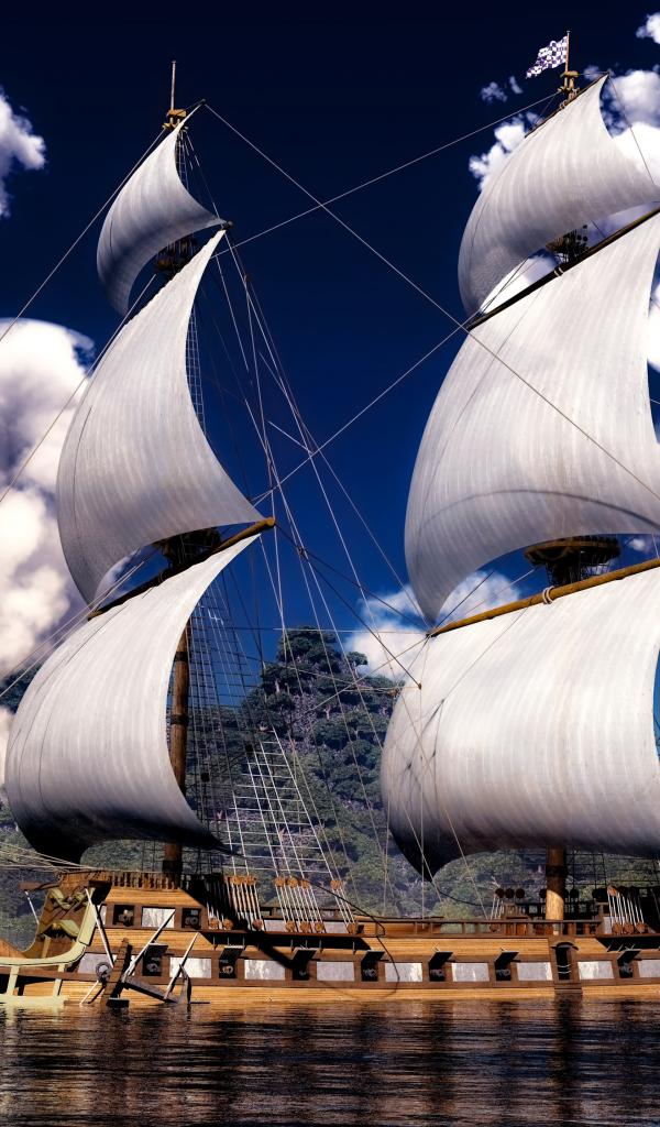 Wallpaper Beautiful sailing ship on the background of white clouds