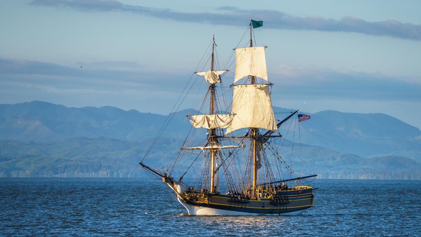 Wallpaper American sailing ship in the bay
