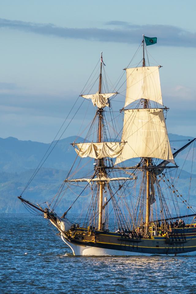 Wallpaper American sailing ship in the bay