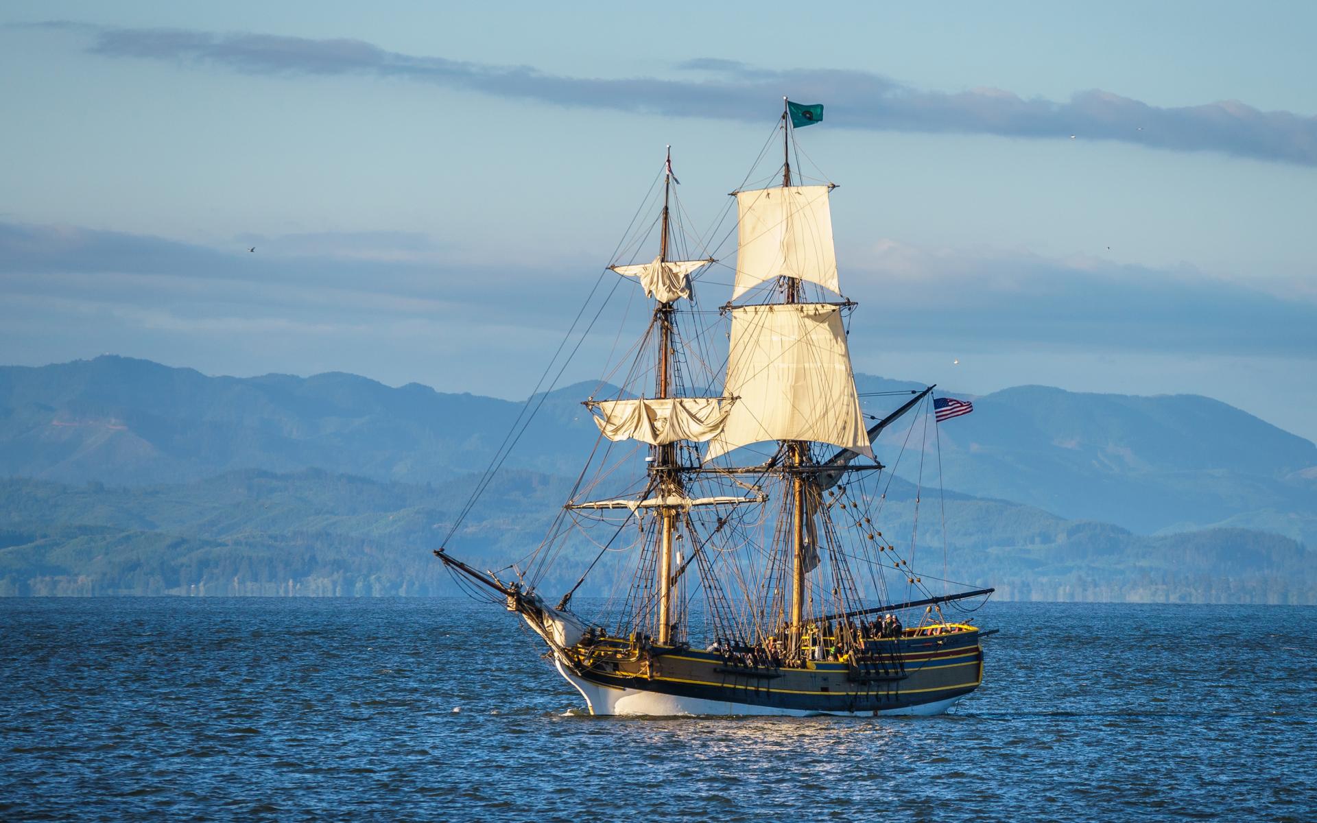 Wallpaper American sailing ship in the bay