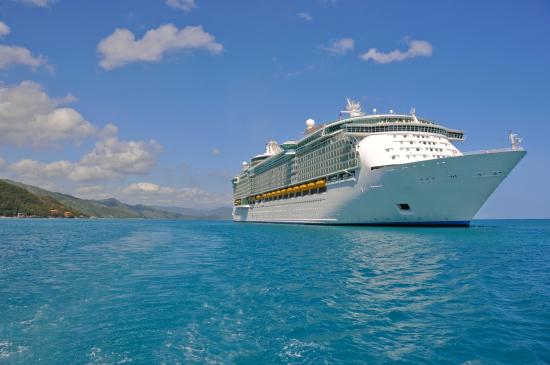 Wallpaper Large white cruise liner at the pier on a tropical beach