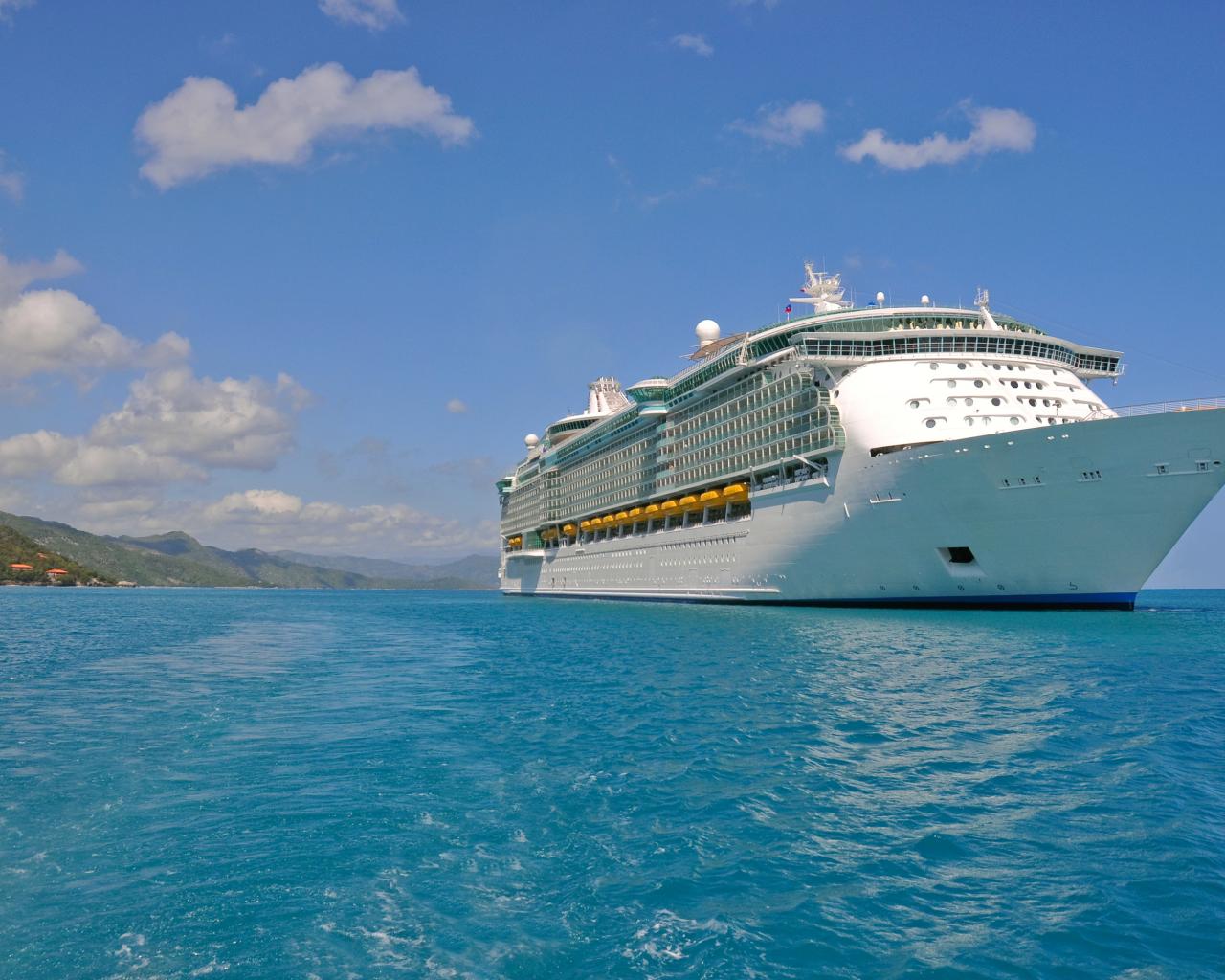 Wallpaper Large white cruise liner at the pier on a tropical beach
