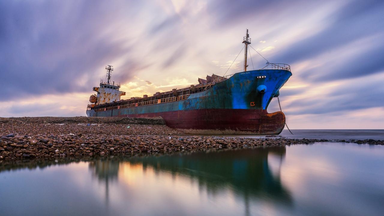 Wallpaper Old rusty ship on the shore under a beautiful sky