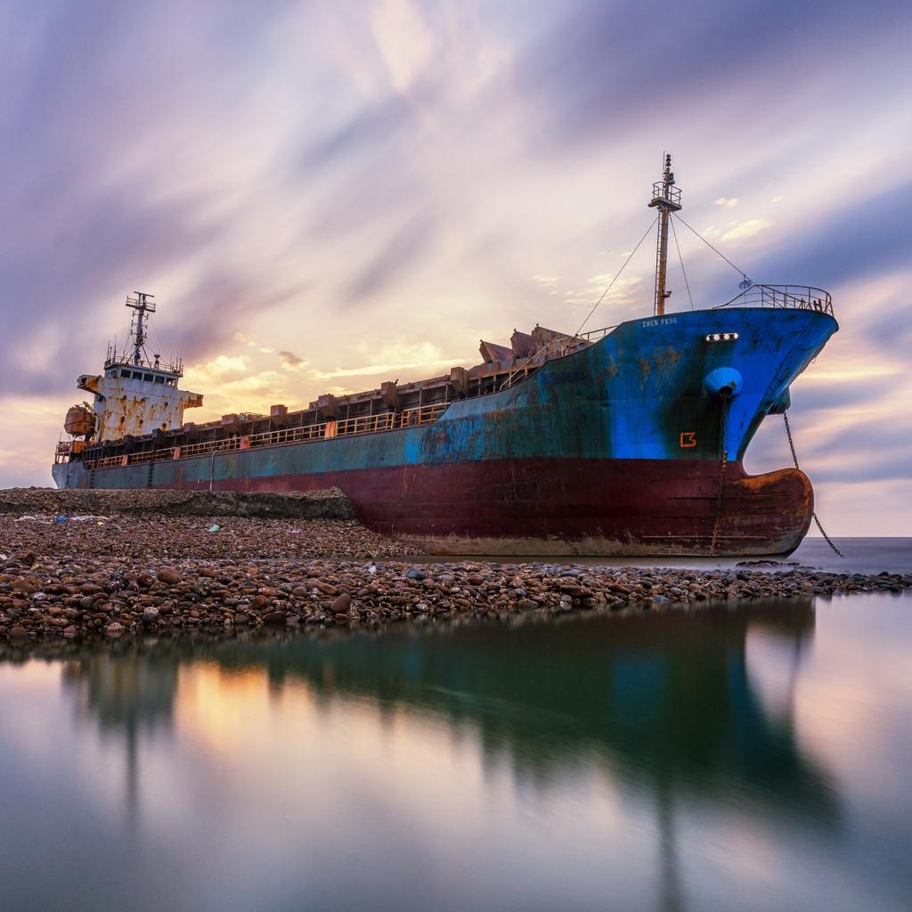 Wallpaper Old rusty ship on the shore under a beautiful sky