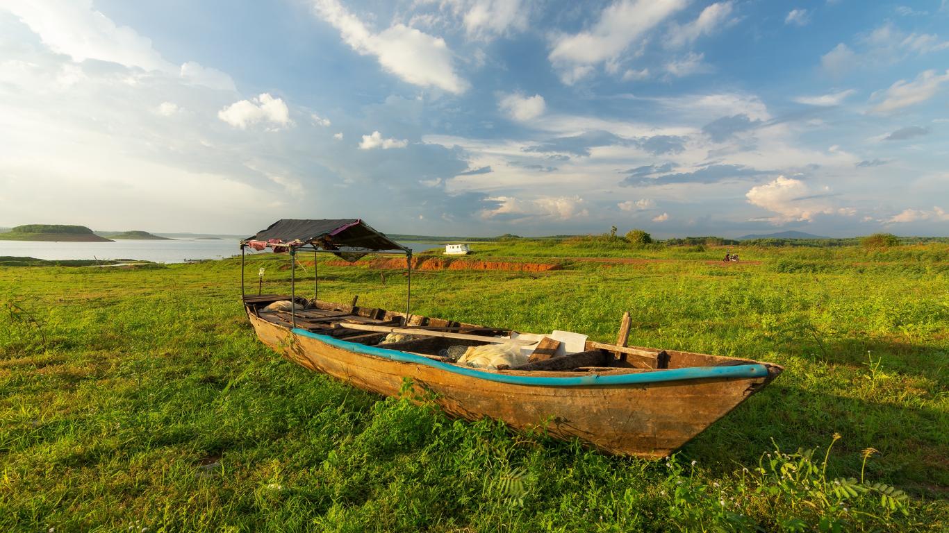Wallpaper Wooden boat in a paradise island in Polynesia