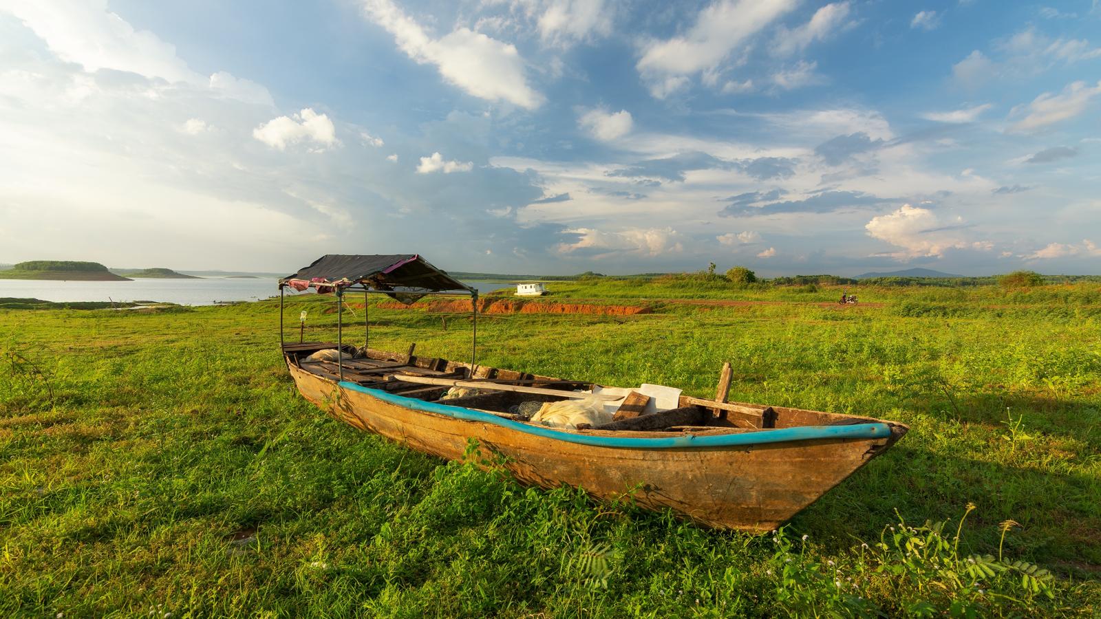 Wallpaper Big wooden boat on green grass