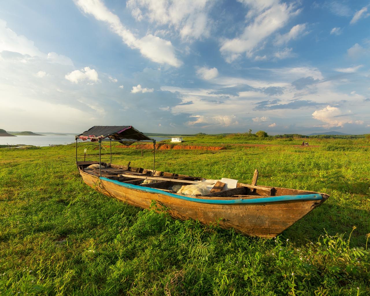 » Wallpaper Big wooden boat on green grass