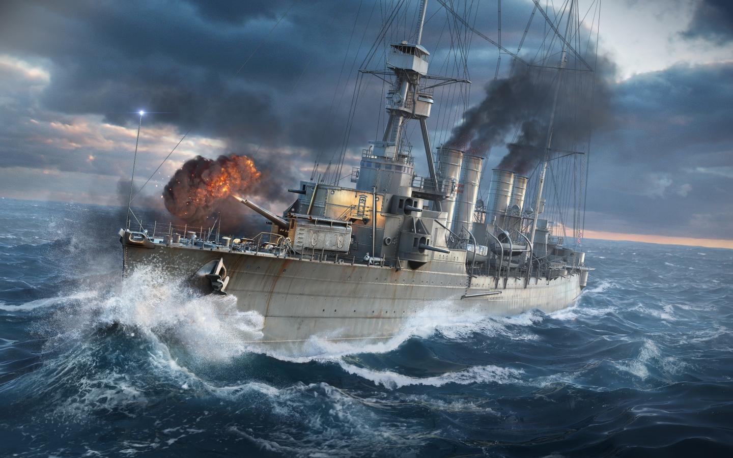 Wallpaper Military battleship at sea during a storm