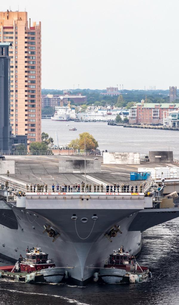 Wallpaper Large aircraft carrier in port