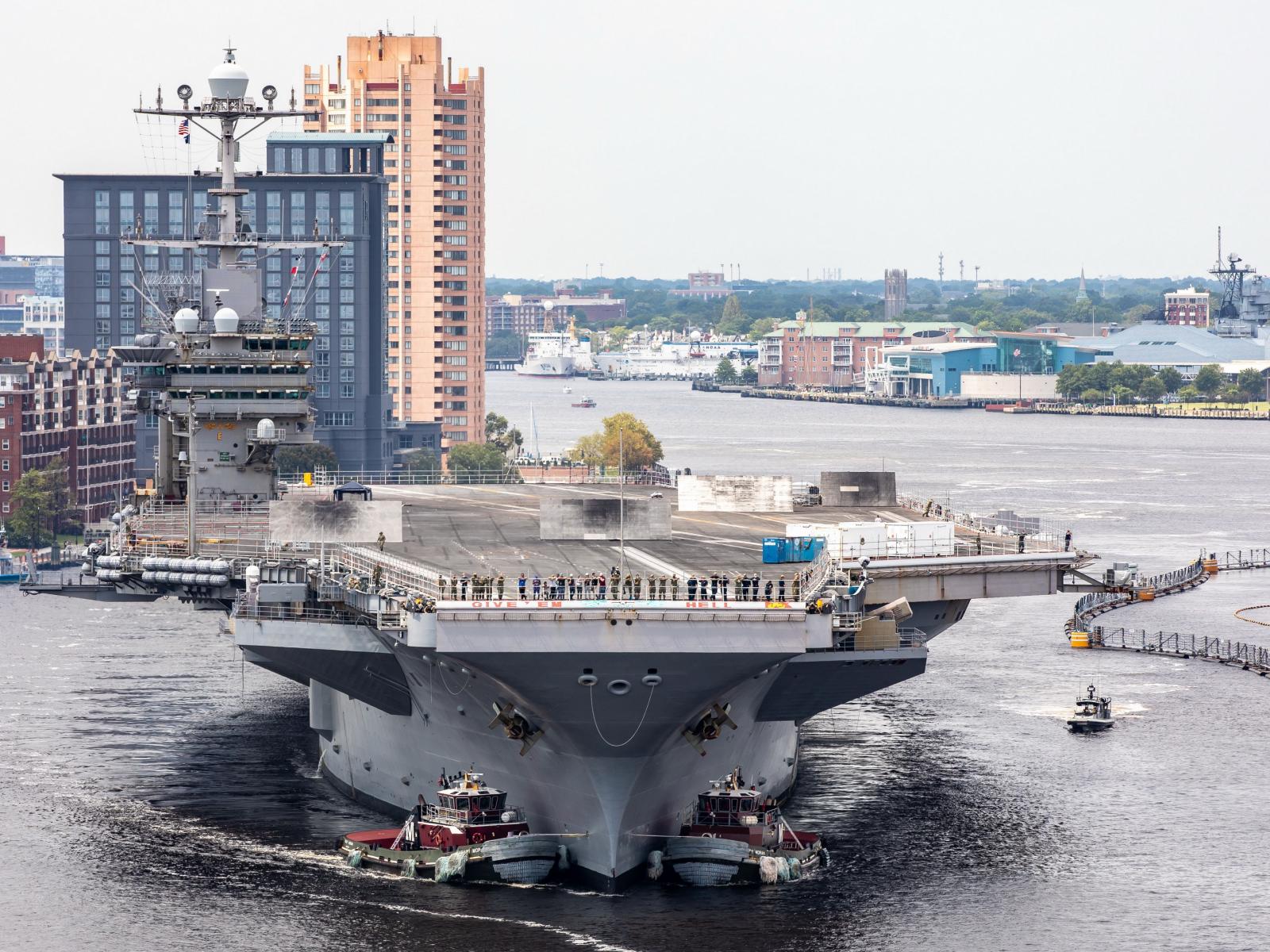Wallpaper Large aircraft carrier in port