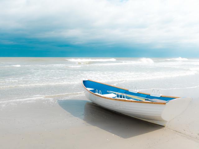 Wallpaper The boat stands on white sand by the sea
