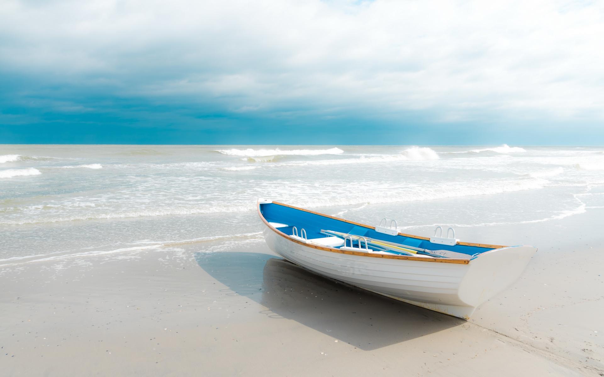 Wallpaper The boat stands on white sand by the sea