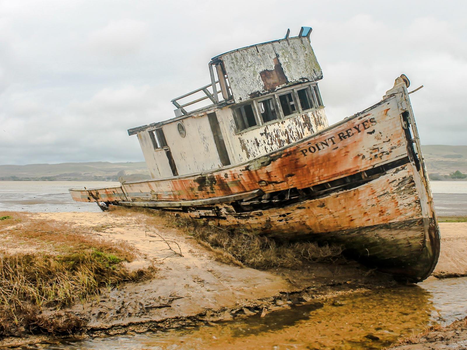 Wallpaper Old abandoned fishing boat on the shore