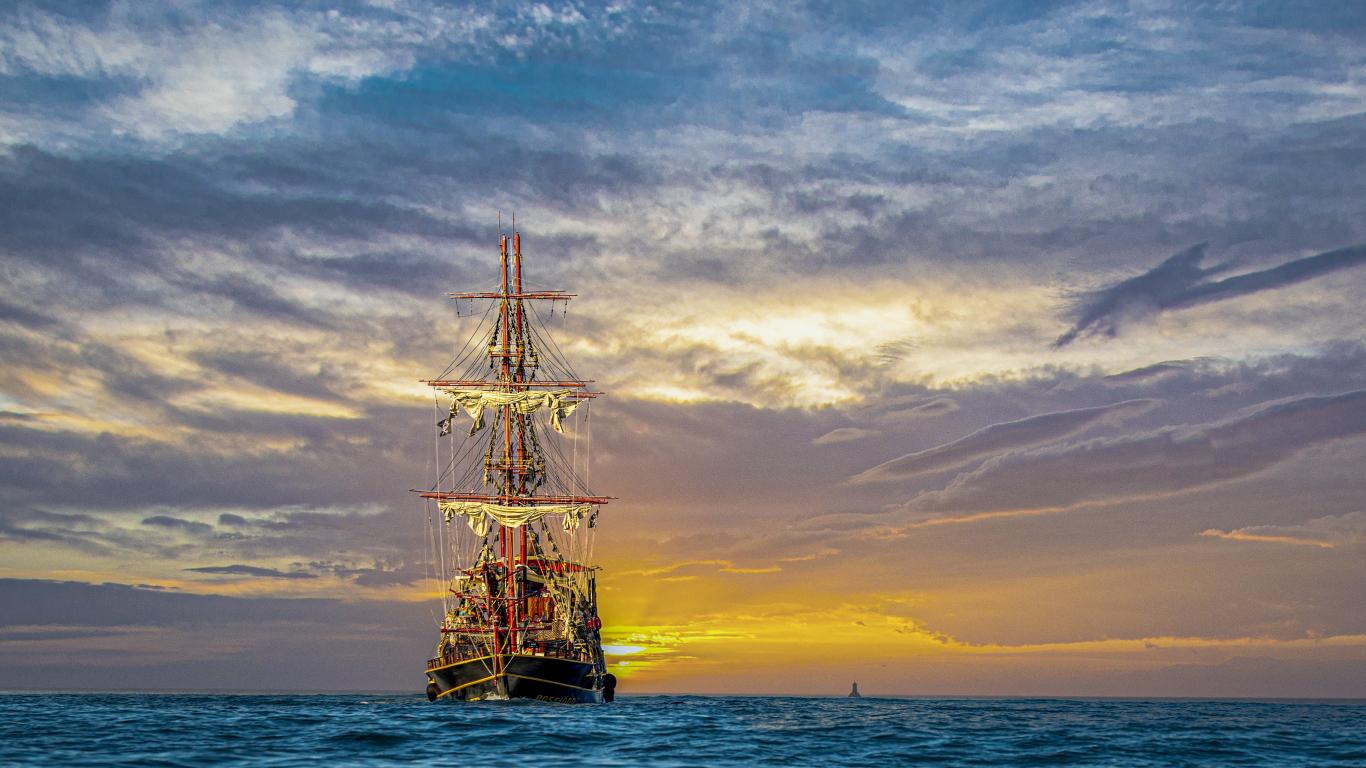 Wallpaper A pirate ship in a stormy ocean during a storm