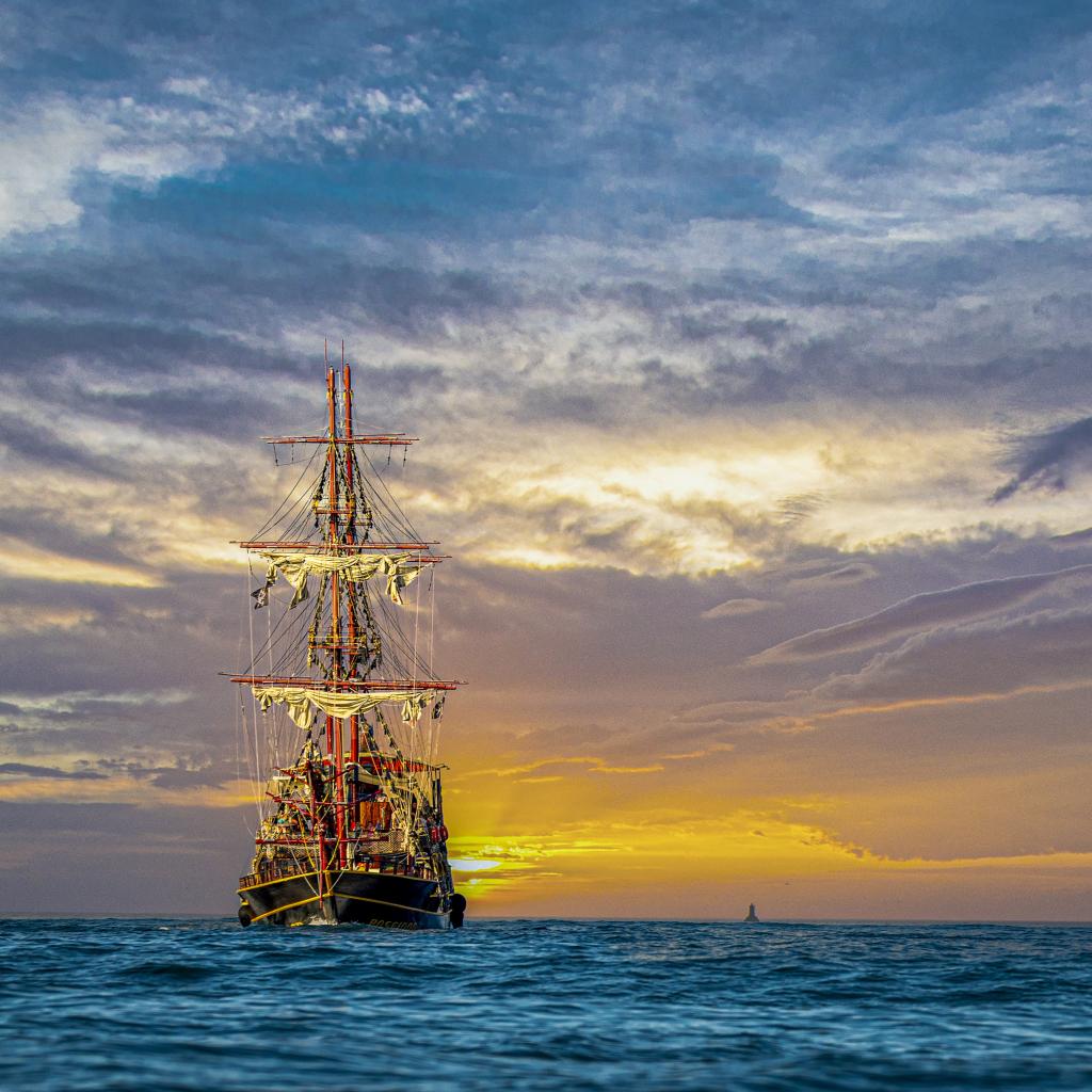 » Wallpaper Large pirate ship at sea at sunset