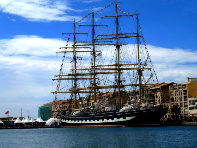 Wallpaper Large sailing frigate in the port against the sky