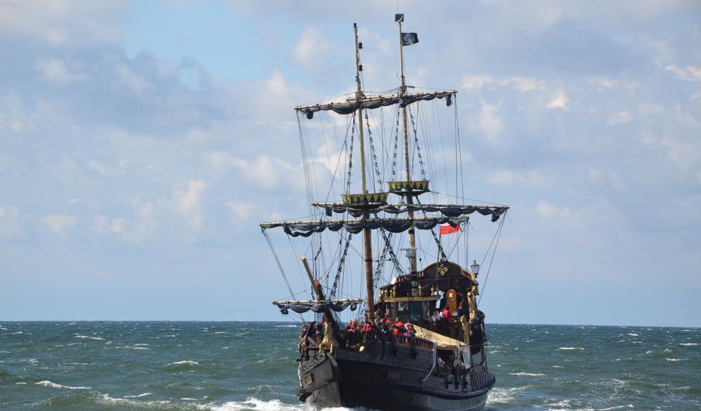 Wallpaper Big black pirate ship at sea