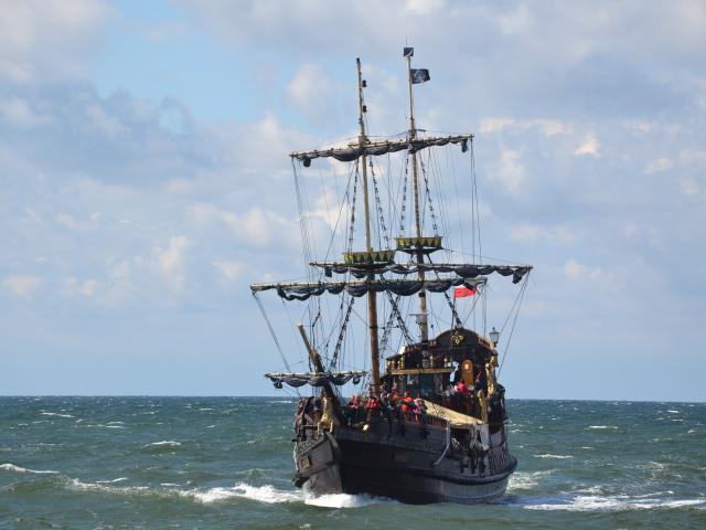 Wallpaper Big black pirate ship at sea