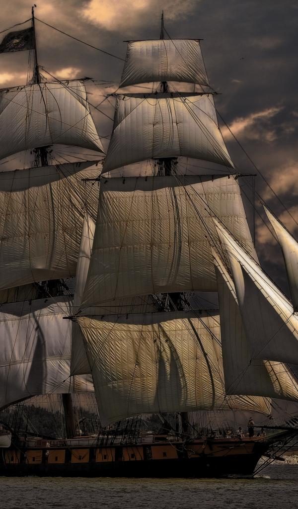 Wallpaper Big ship with white sails in the sea