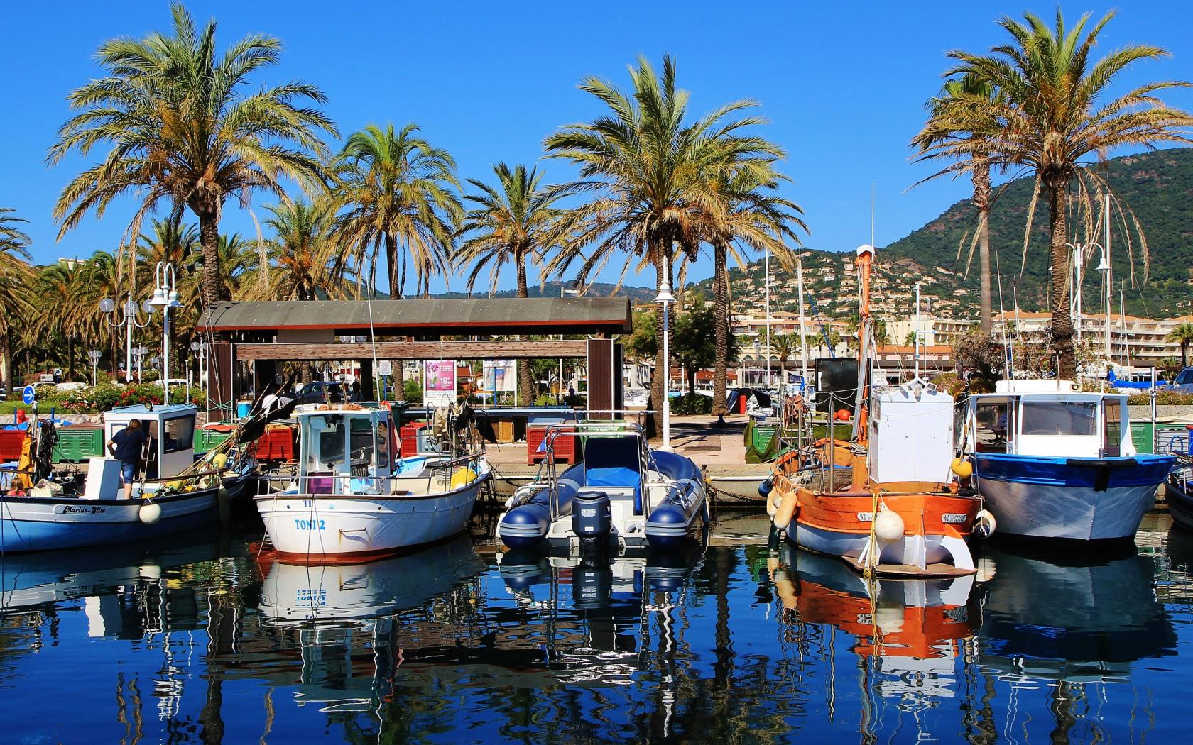 Wallpaper Boats at the pier on a tropical beach