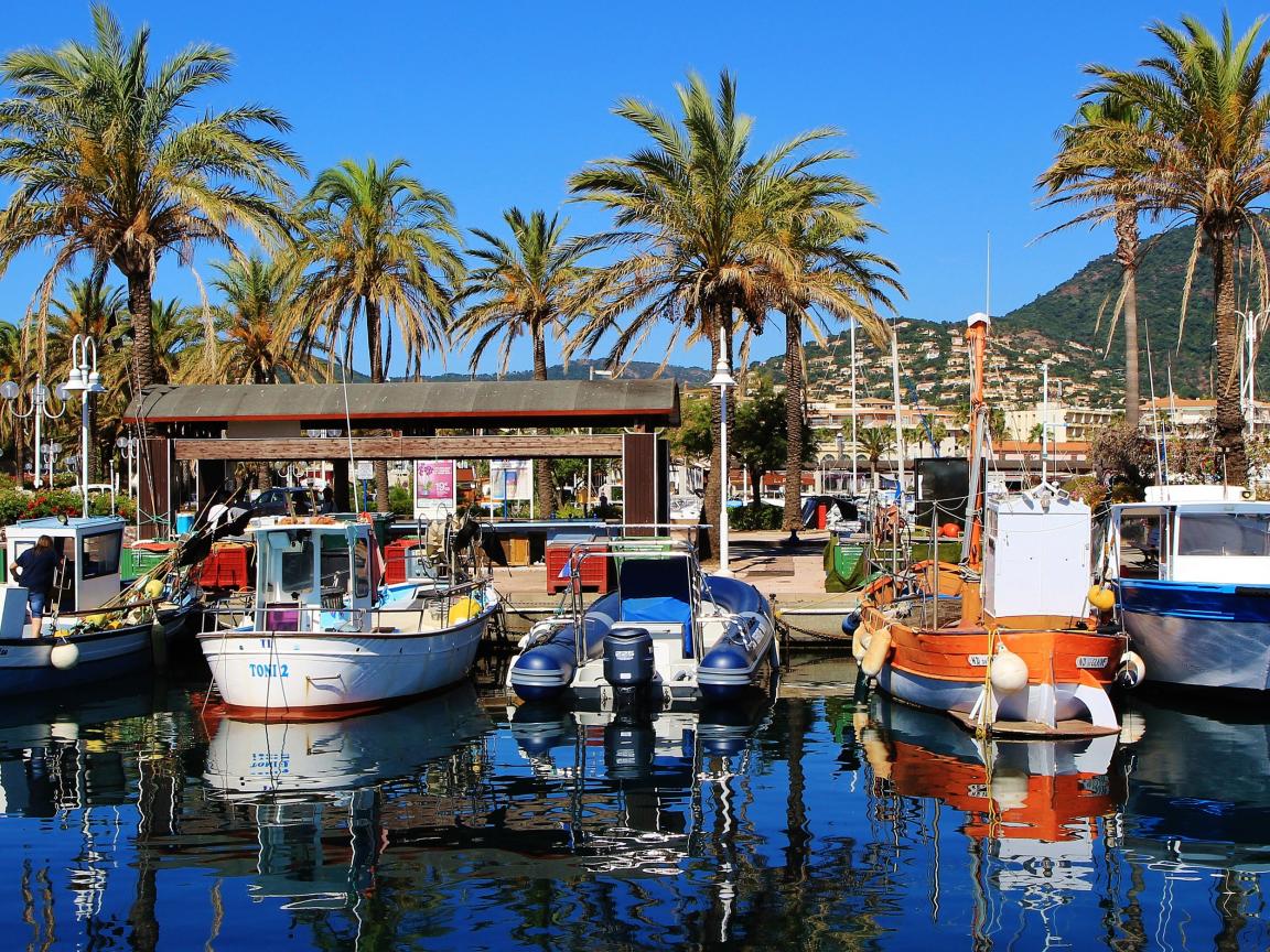 Wallpaper Boats at the pier on a tropical beach
