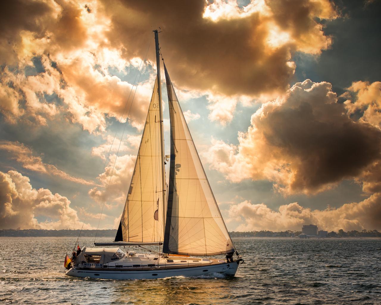 Wallpaper Large sailing yacht at sea at sunset