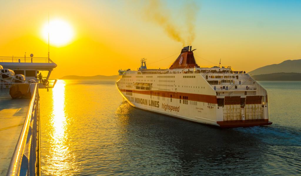 Wallpaper Large cruise ship sailing into the sunset