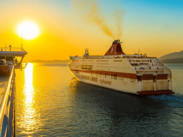 Wallpaper Large cruise ship sailing into the sunset