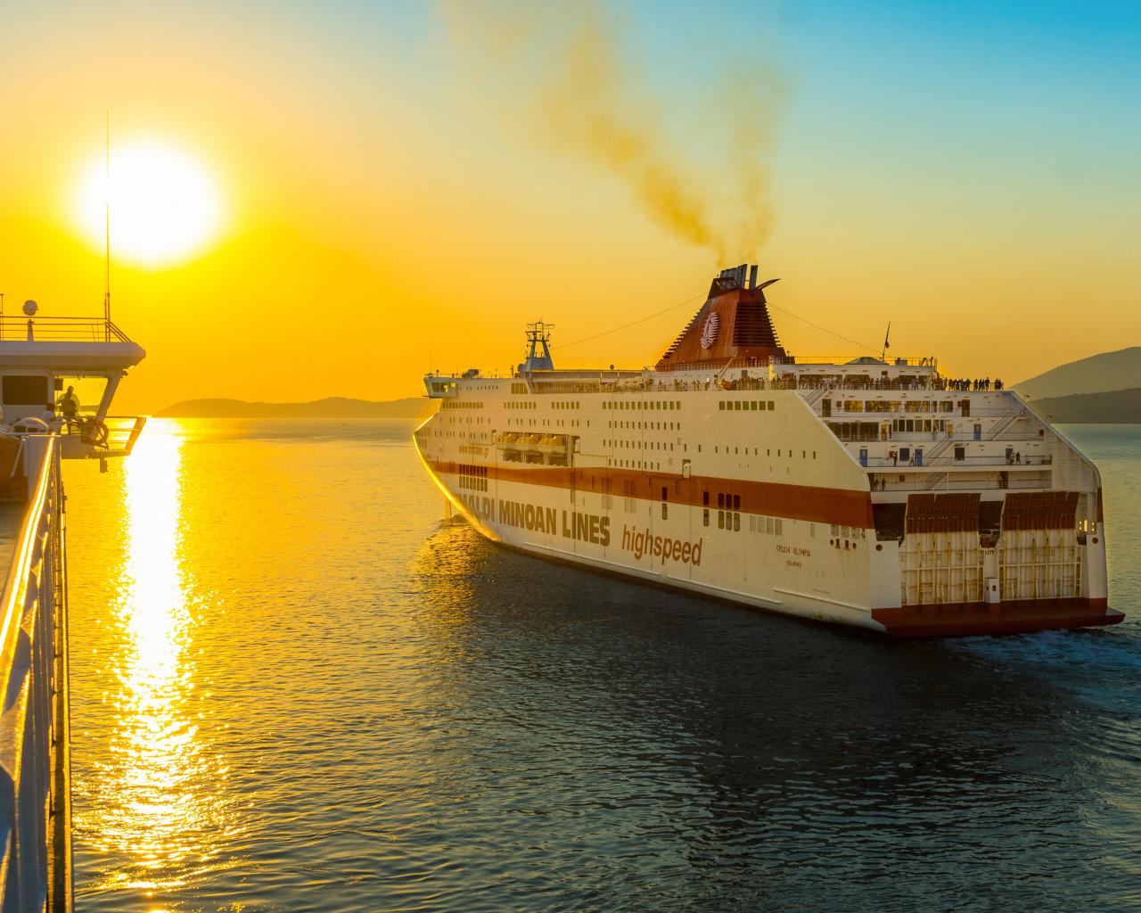 Wallpaper Large cruise ship sailing into the sunset