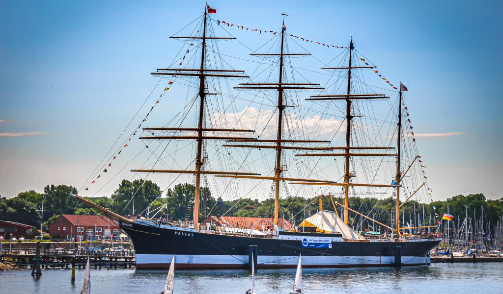 Wallpaper Sailing ship Willem Barentsz with lowered sails on the dock