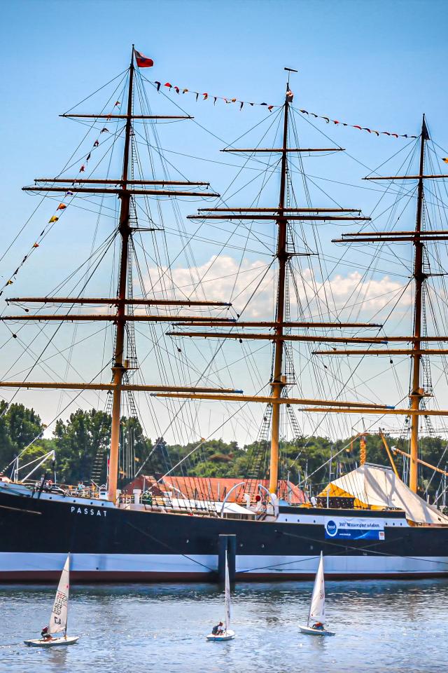 Wallpaper Sailing ship Willem Barentsz with lowered sails on the dock