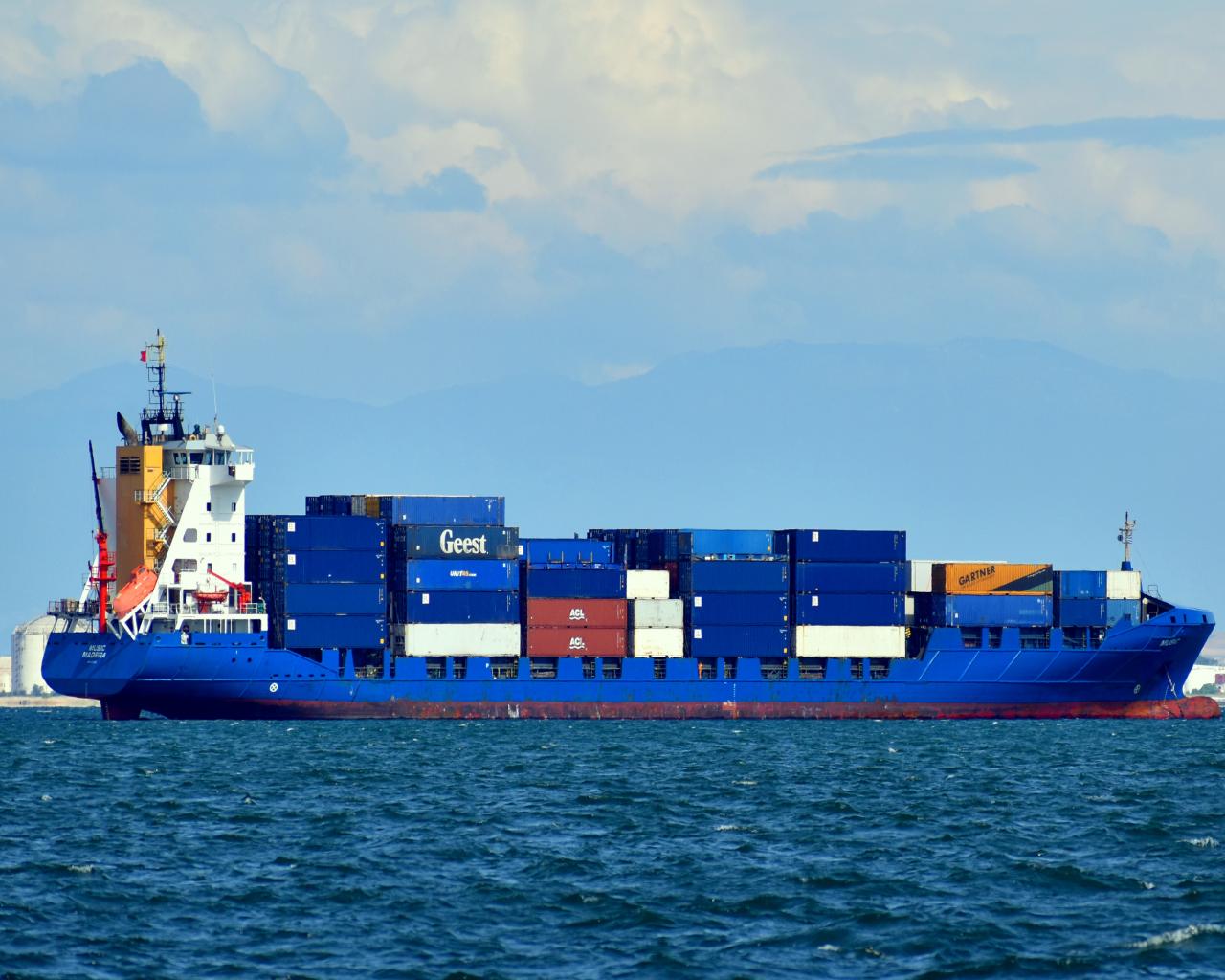 Wallpaper Cargo tanker with containers at sea