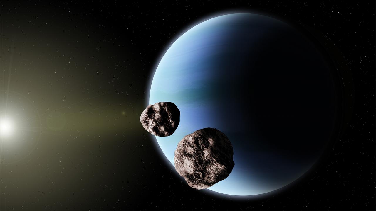 Wallpaper Flying asteroids near the planet Neptune