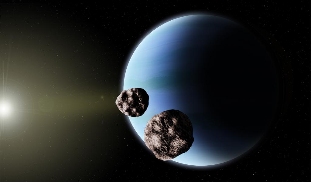 Wallpaper Flying asteroids near the planet Neptune