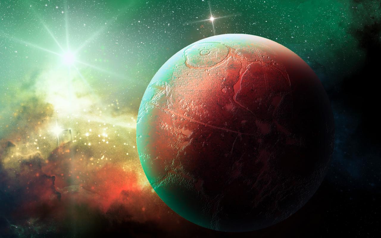 Wallpaper Big planet in space with bright stars.