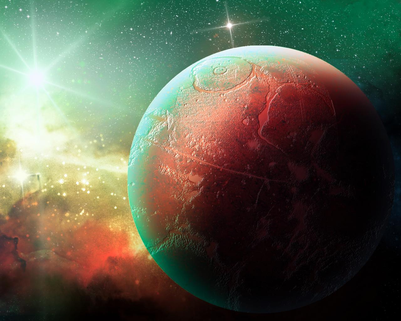 Wallpaper Big planet in space with bright stars.