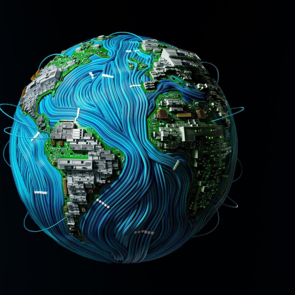 Wallpaper The planet earth is shrouded in wires on a black background
