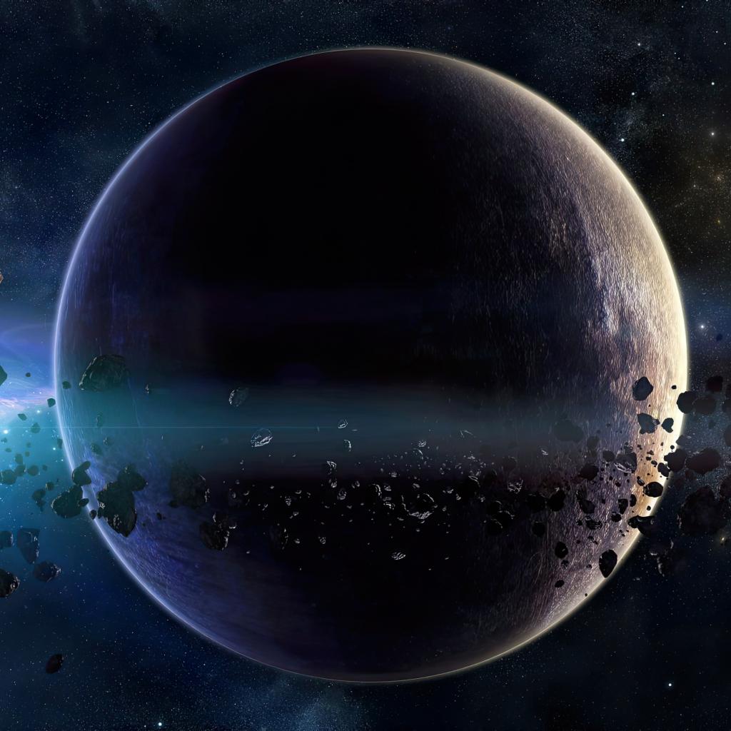 Wallpaper Large planet with asteroids in space