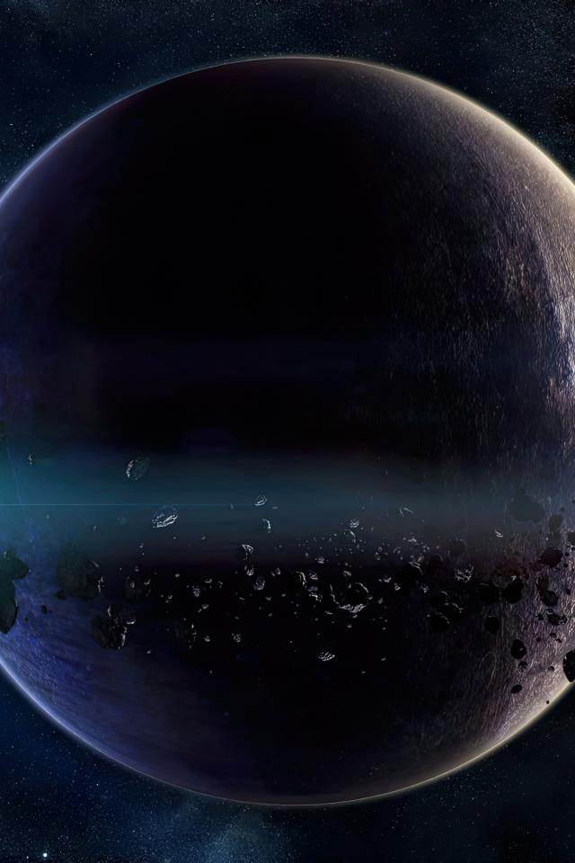 Wallpaper Large planet with asteroids in space