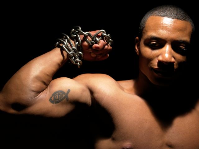 Wallpaper Tattoo on the arm of a pumped-up man on a black background