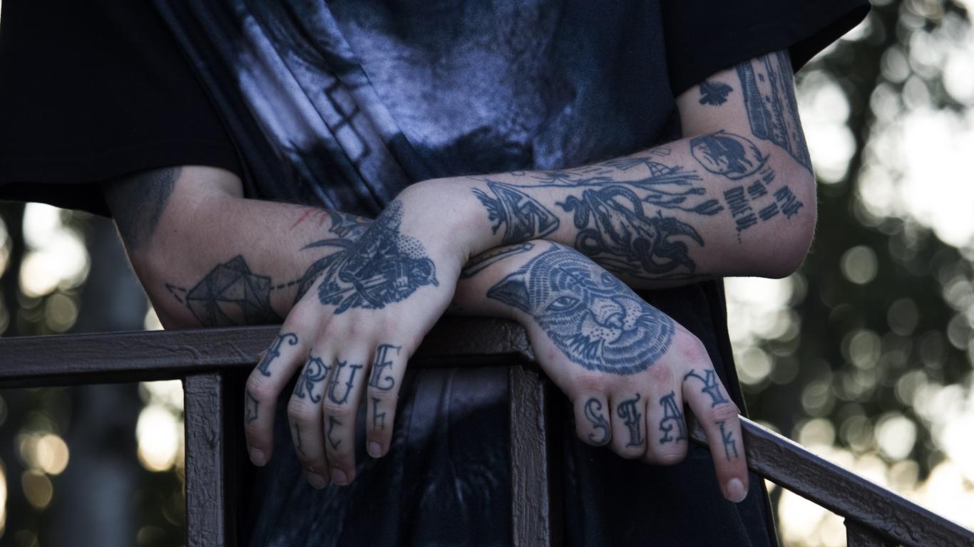 Wallpaper Tattoos on the arms of a guy in a black t-shirt