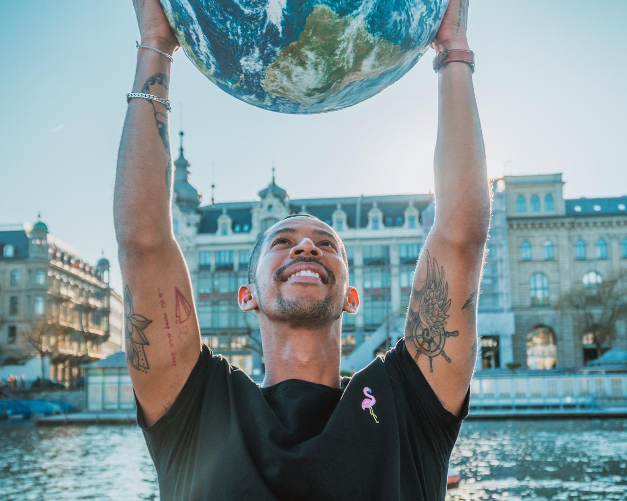 Wallpaper Man with tattoos on his body with earth in his hands