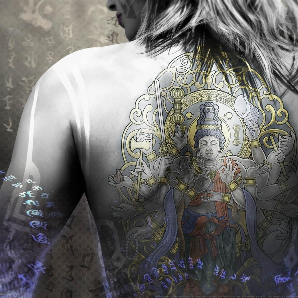 Wallpaper Buddha Tattoo on the back of the girl