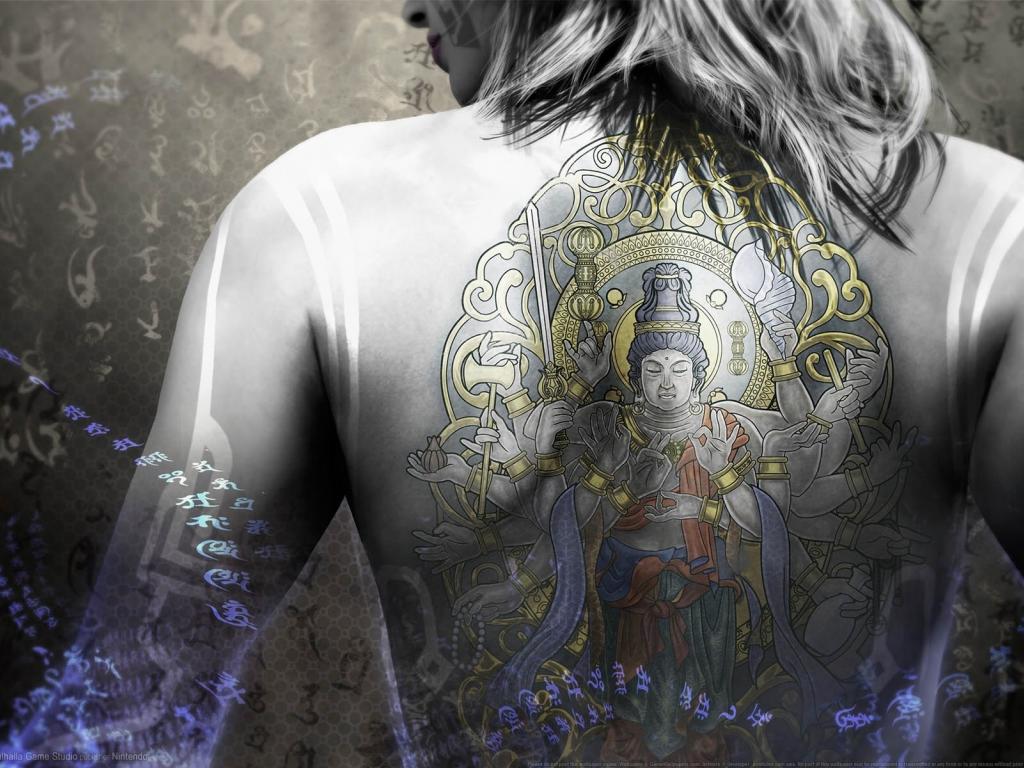 Wallpaper Buddha Tattoo on the back of the girl