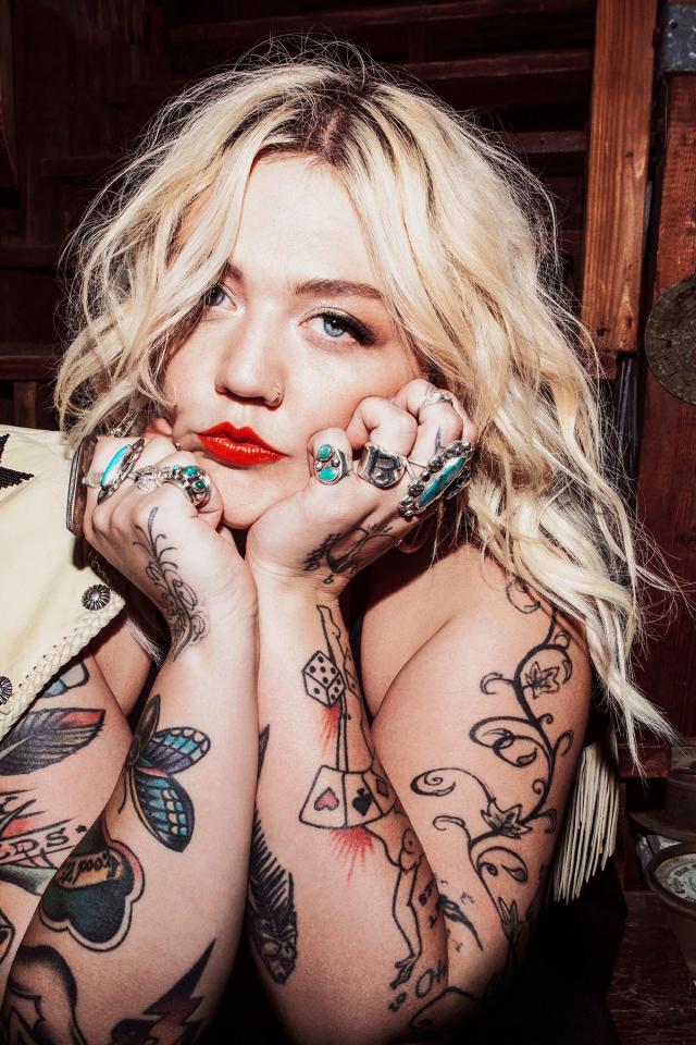 Wallpaper Blue-eyed blonde with tattoos on her arms