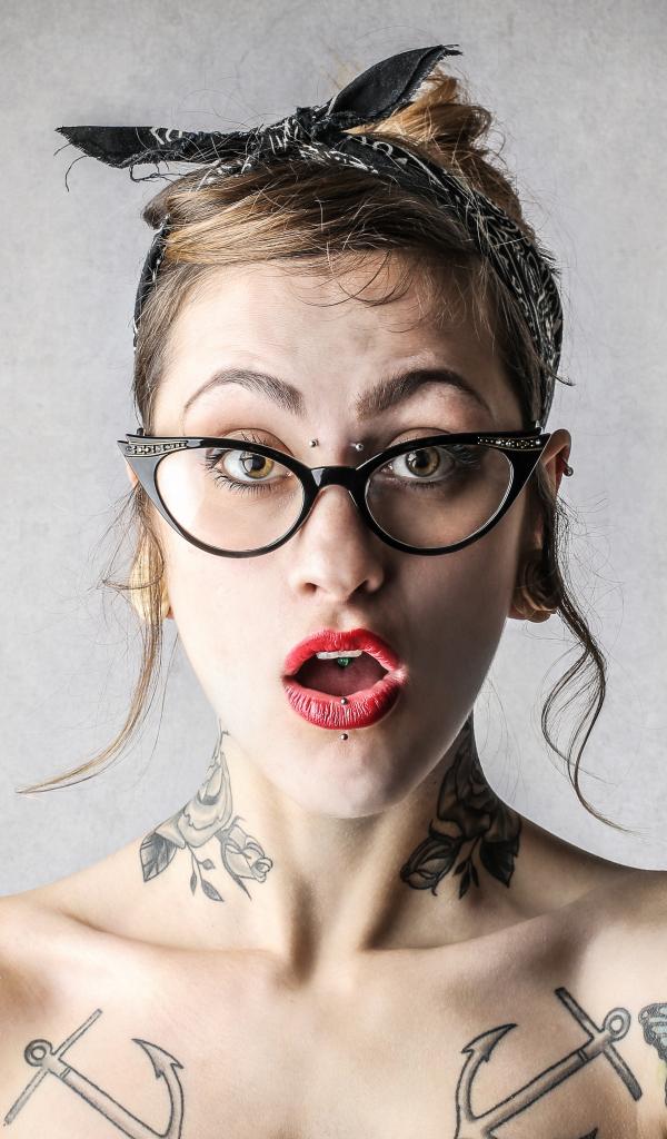 Wallpaper Surprised girl in glasses with tattoos on her body
