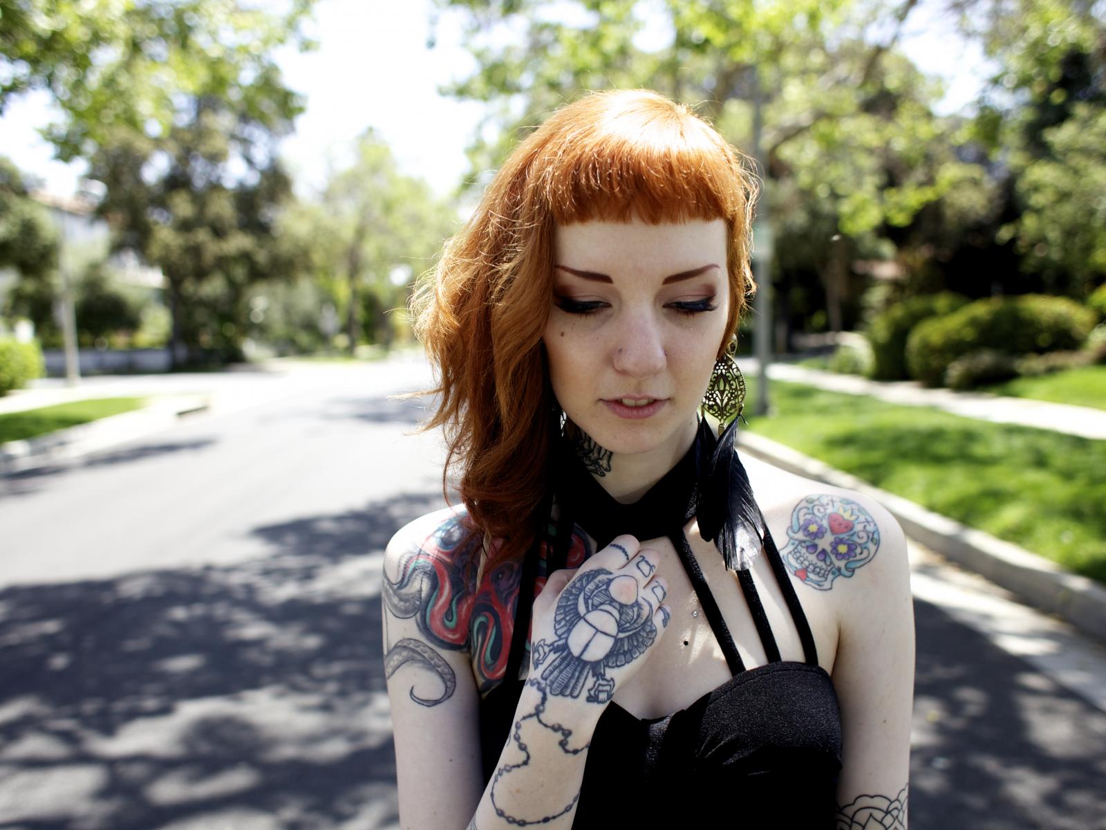 Wallpaper Red-haired girl neformalka with tattoos on the body