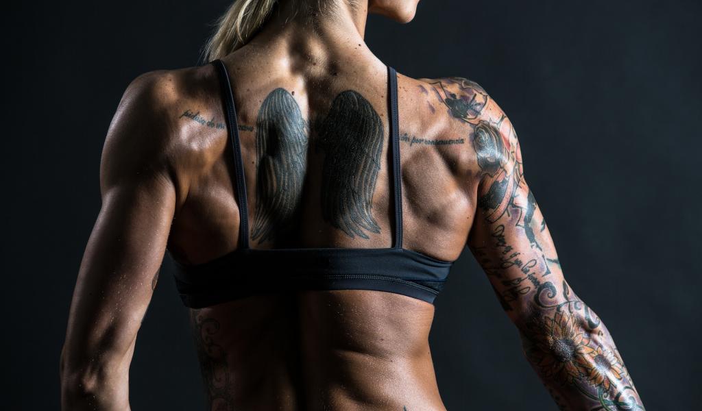 Wallpaper Tattoo wings on the back of the girl